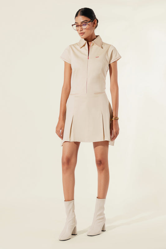 Popcorn Fuss Free Dress - Beige